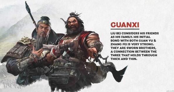 刘备在游戏的战役模式中,初期的形式并不好,而他面对的则是游戏中最强大的敌人之一,因此与关羽、张飞的兄弟情谊在这里至关重要,他们二人是刘备团结技能的重心,而部下们只有在开心的时候才能够加强团结,因此需要玩家们保证将领们高兴。