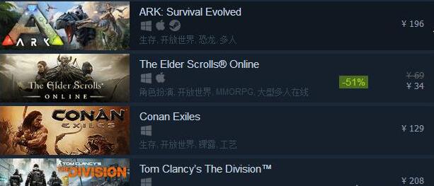 大型多人在线类推荐The Elder Scrolls Online:summerset,整个游戏充满了西方魔幻,这里有其实有法师,是一款RPG游戏,类似魔兽。2018年5月22日发行,售价只要99RMB。ARK:Survival Evolved是虚幻4引擎打造的一款多人在线生存竞技网游,