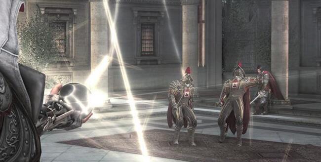 在《刺客信条:兄弟会》的主线游戏当中,还有《刺客信条:启示录》的回忆阿泰尔的游戏当中,都有玩家可以操控伊甸苹果的剧情,虽然必须要澄清的是这是两颗不同的伊甸苹果。在《刺客信条:兄弟会》当中,玩家在梵蒂冈取得伊甸苹果后需要摆脱追兵的时候就能启动伊甸苹果,只要长按鼠标左键,就能开始为伊甸苹果蓄能,蓄能完毕的威力就相当厉害,只要轰的一声,伊甸苹果就能直接发光、杀死追兵,注意这是不限数量、不限兵种的,如果放在平时,你需要首先切换到高调状态锁定敌兵,然后通过攻击、破防、防反杀敌,就算你跟我一样娴熟,面对教皇卫队这种精英都很难说能像砍瓜切菜一样击倒他们,而通过伊甸苹果,就再也没有难度、级别可分,只要是在伊甸苹果的杀伤范围内,他们就会全部像是被吸尘器抽走灵魂一样死翘翘,这威力要远远超过所有的武器吧?