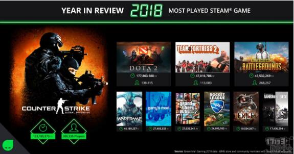 最近来自知名电视游戏平台商GMG(Green Man Gaming)的数据显示,相比2017年,2018年Steam平台上的玩家累计时间同比增长了88%,而在众多热门游戏中,《CS:GO》的玩家数高居榜首,达到了30万人,累计在线时间接近2亿小时!紧随其后的《DOTA2》也不甘示弱,在线时间达到了1亿7000万小时。