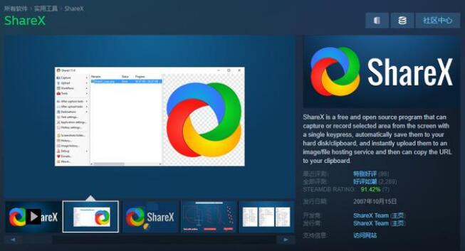 最关键的是,这个软件并不是付费软件,谁都可以直接使用,在Steam上找ShareX就可以用了,体积是113M,2007年发行的,到现在13年基本已经是完全体软件,非常成熟。