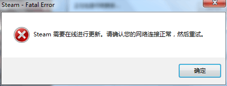有部分同学在下载完steam后,本来高高兴兴的打开准备开始游戏了,却从中来了一头拦路虎,请看下图,(steam需要在线进行更新。请确认你的网络连接正常,然后重试。)下面给出几种解决方法: