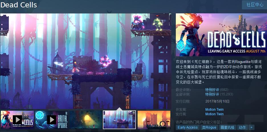 不说别的,从最开始50多块钱到现在直接飙涨到80块,游戏内容和游戏质量我们肯定不用怀疑,买就对了。口碑极佳、游戏质量极佳,Motion twin通过Dead cells没少赚钞票。2D、像素、硬核、无存档点、重复度高,玩家们往往在打一个BOSS的时候要死个无数次,特别是对于手残党,玩这种游戏时的体验真心糟糕,但无脑刷刷刷的这种节奏也让玩家们异常上头,收集完这个道具想收集下一个道具,最后的结果就是无脑死在刷道具的路上(手动滑稽)。