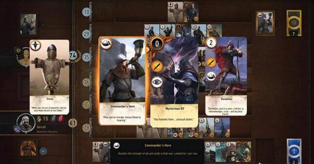 昆特牌其实只是巫师3里面打发时间的小游戏,连制作组也没想到这个玩法独特的卡牌游戏竟然掀起了一阵风潮。很多玩家游戏没通关,昆特牌倒是玩得滚瓜烂熟。“再来一局昆特牌”成了游戏里一个著名的梗。为此,CDPR甚至推出了单独的昆特牌游戏。